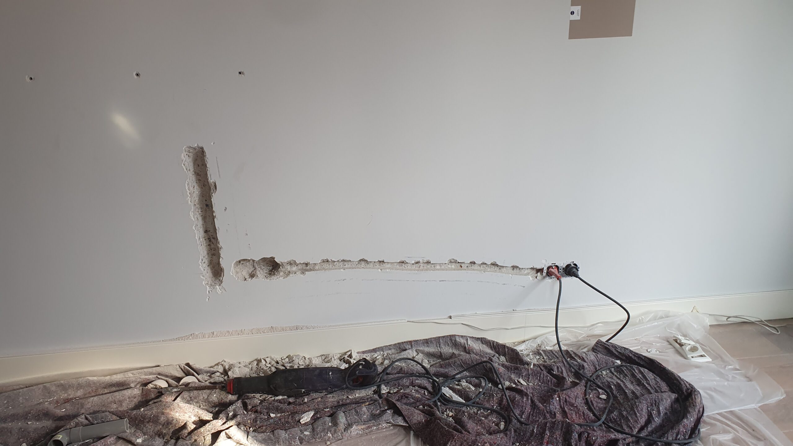 Perilex aanleggen, kookplaat aansluiten en leidingwerk verleggen.