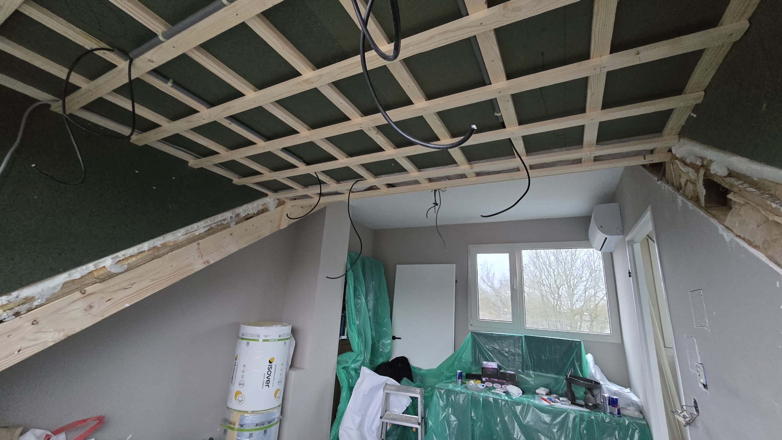 Plafondmontage: Verlaagde plafonds inclusief rachelwerk en isolatie.