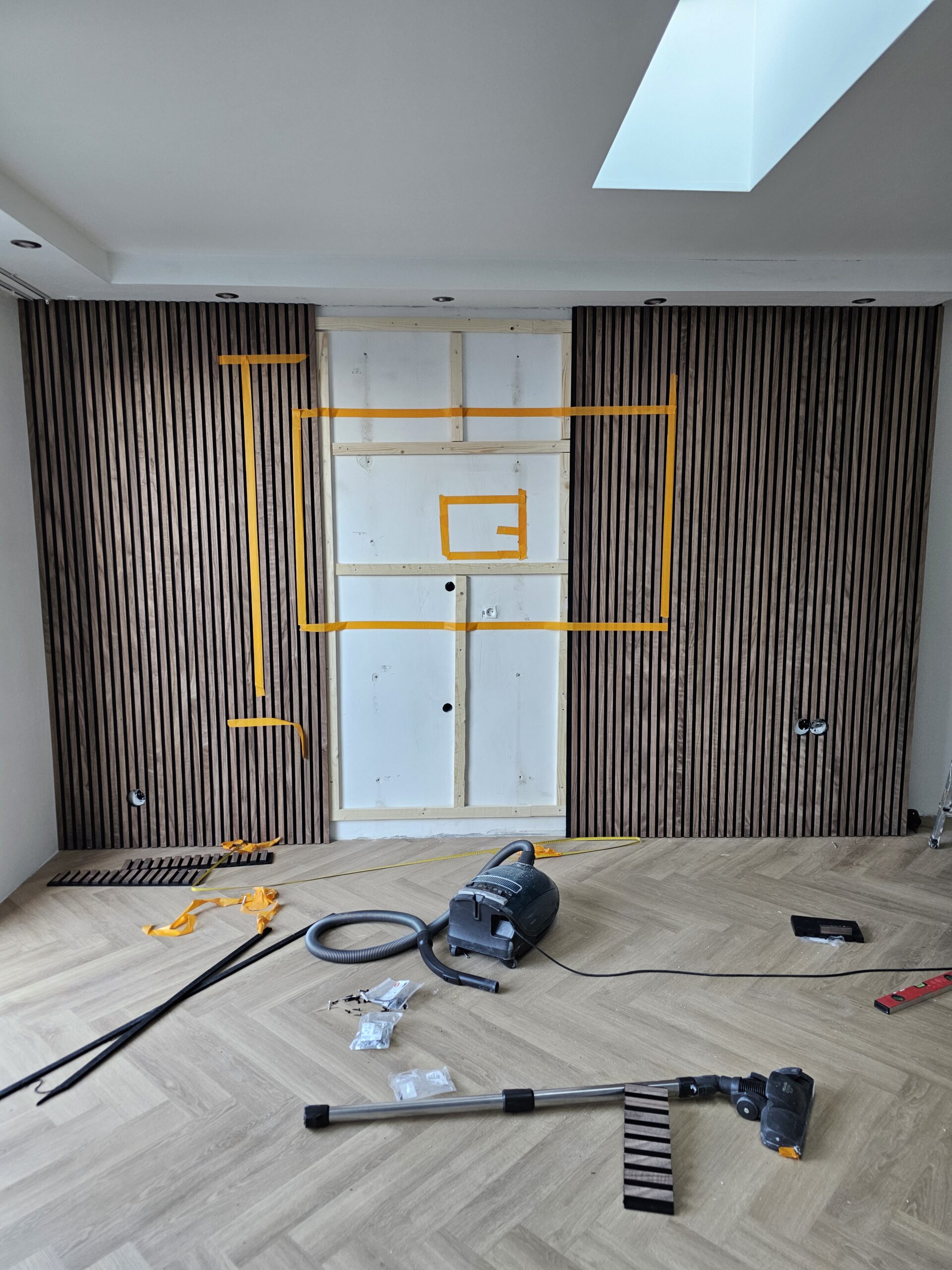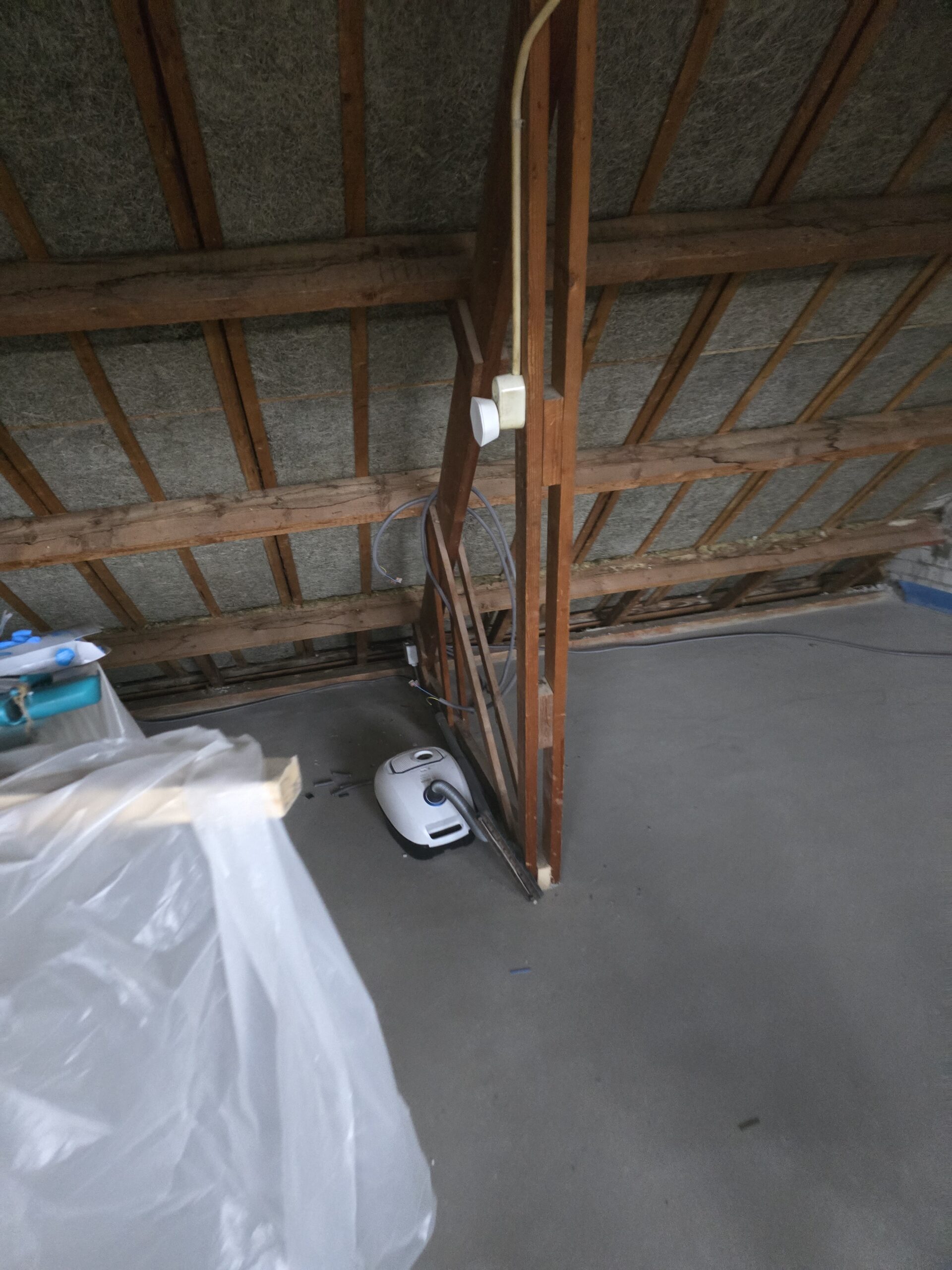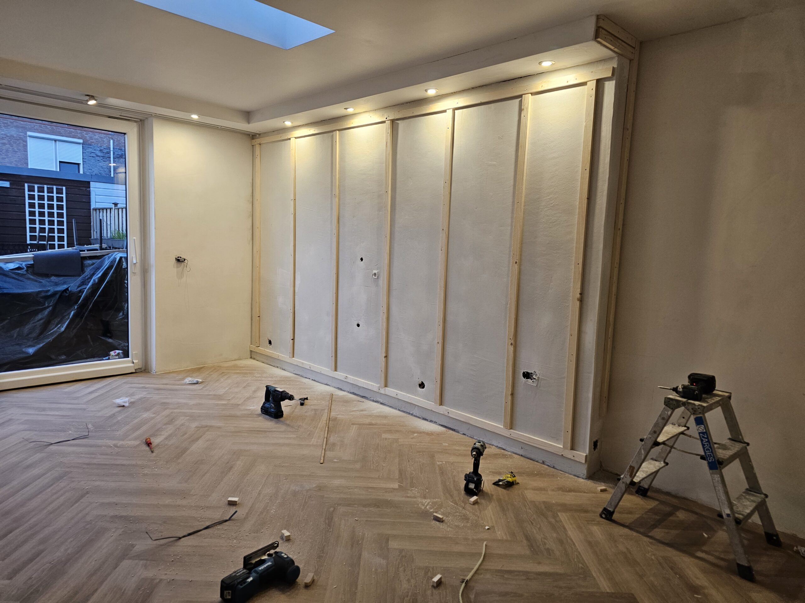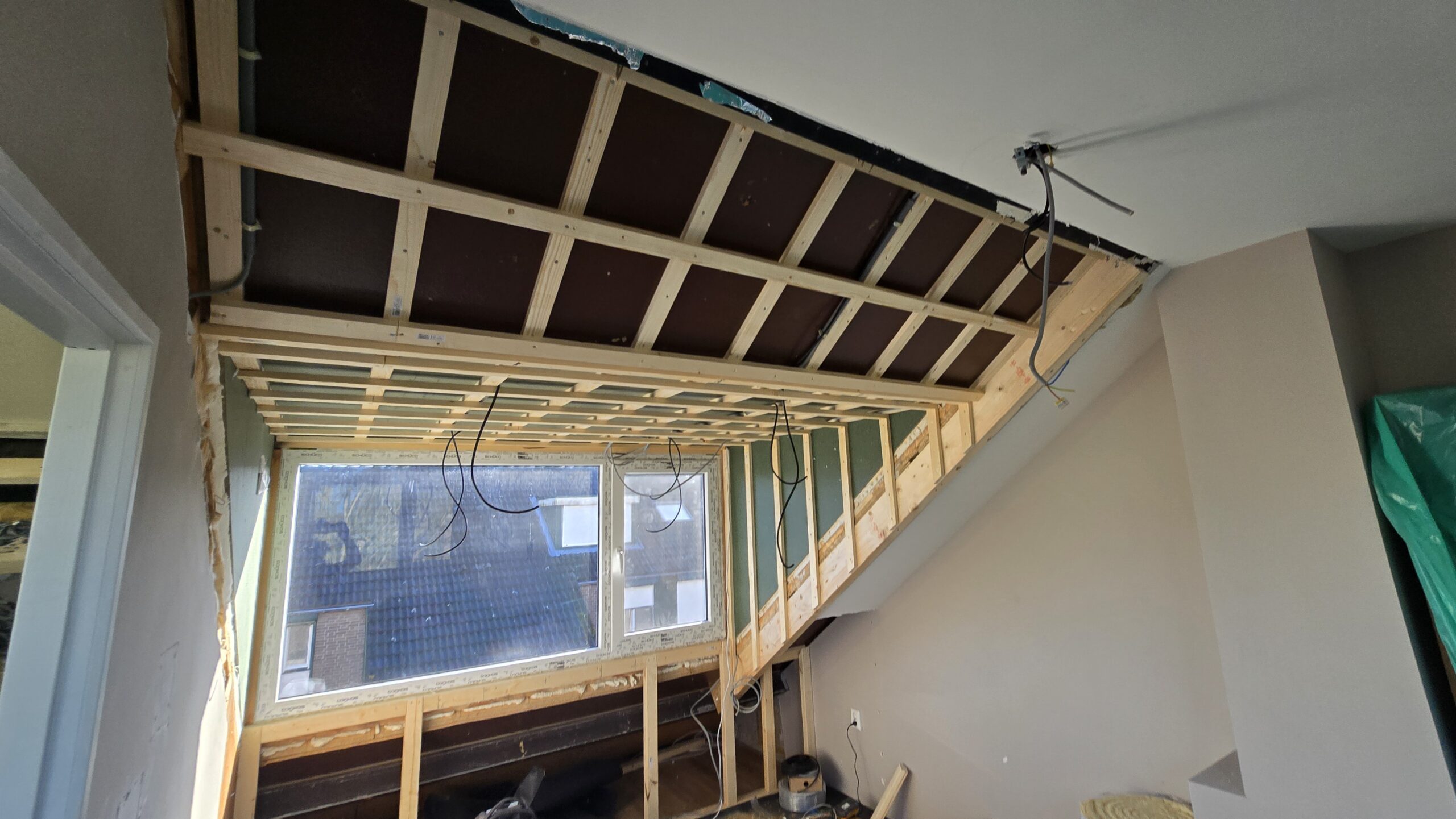 Wandconstructies: Houten regelwerk voor nieuwe scheidingswanden.